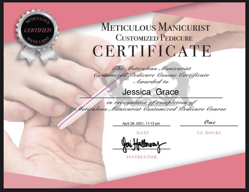 Gloss is owned and operated by Nail Technician and Esthetician, Jessica Grace. Jessica keeps those hands and feet looking and feeling great! With over eight years experience in the industry, she specializes in maintaining beautiful hands and feet and even offers her own cuticle oil blend with essential oils to repair and strengthen nails, and soften and hydrate the skin. With an associates in fine art she understands how to apply color theory in either tiny works of art on your nails or what formula will give you the most complimentary brow shade. She is dedicated to continuing education and keeping up with the latest techniques and trends. She has extensive training and is a Meticulous Manicurist certified nail technician that offers a tiered pedicure experience catered to your individual foot needs. As a dual licensed operator she also offers facials, brow lamination and tinting, and facial waxing. Come get glossy!